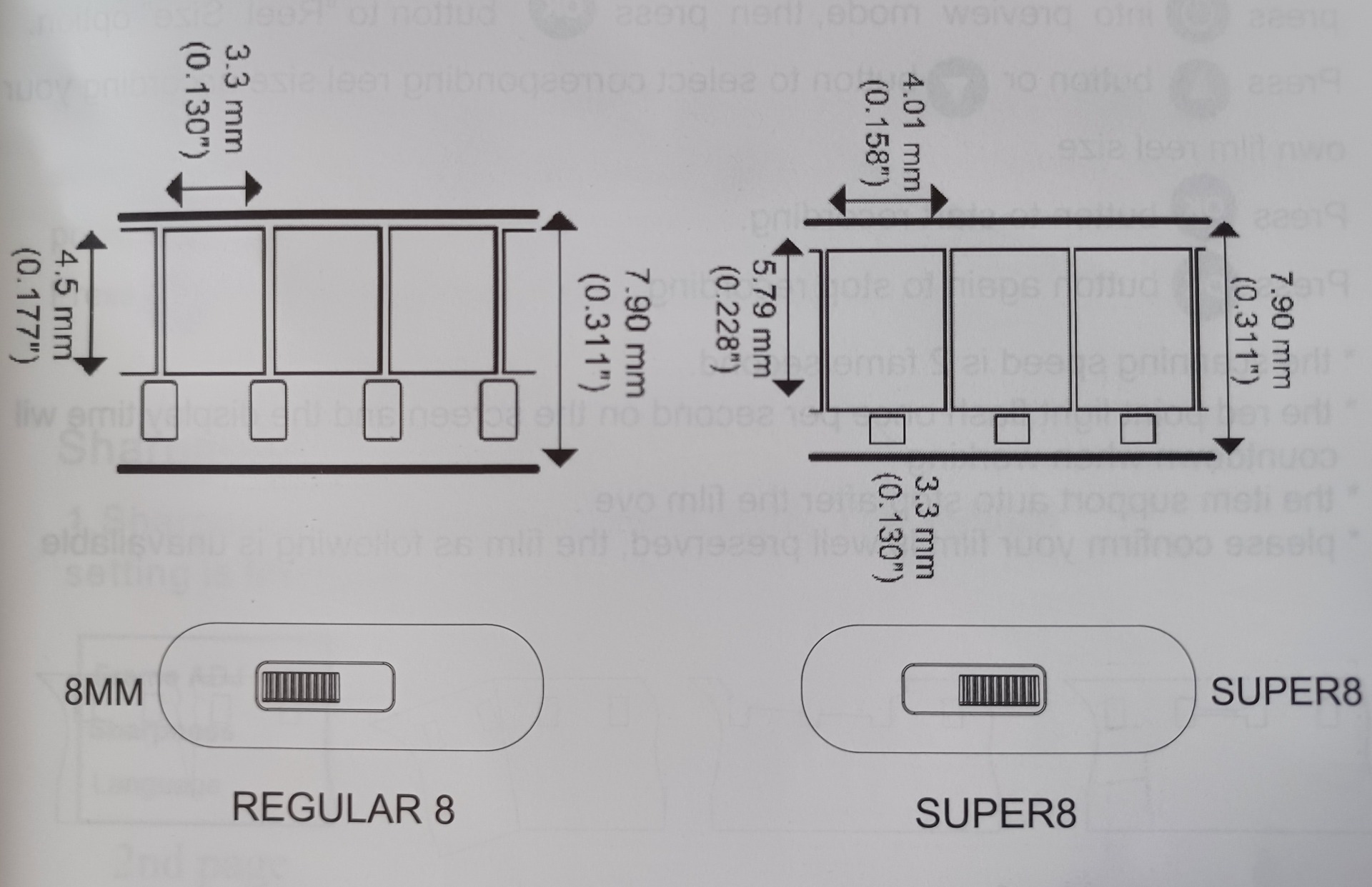 Nos filmes Super8, a furação é mais pequena e a 'janela' impressa maior.